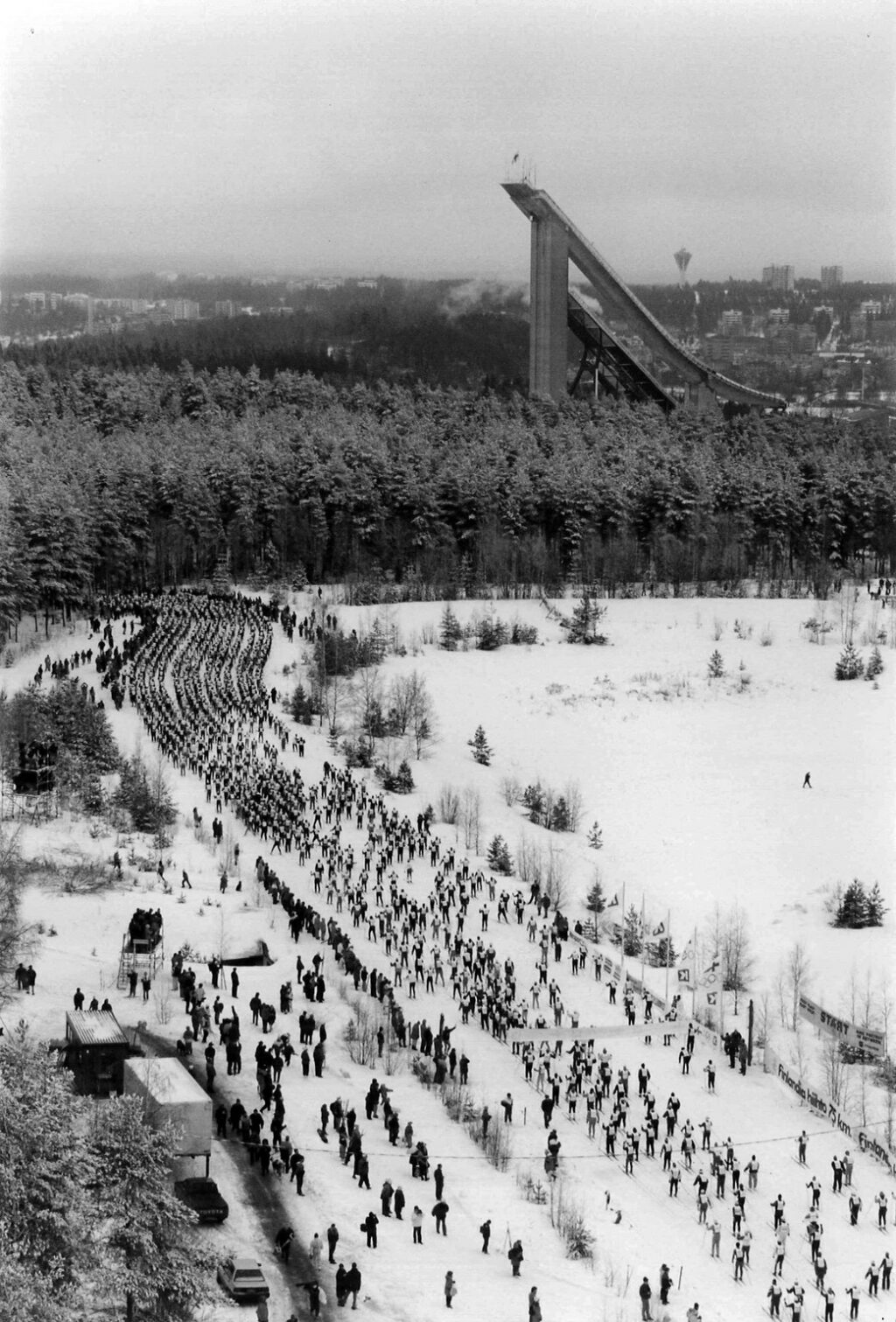 The Finlandia-hiihto route and distance have had to be altered due to weather conditions a number of times since the 1970s. Already in 1975, the start took place exceptionally from the ice of Lake Vesijärvi and covered the original 50 km ski route of the Lahti Ski Games.