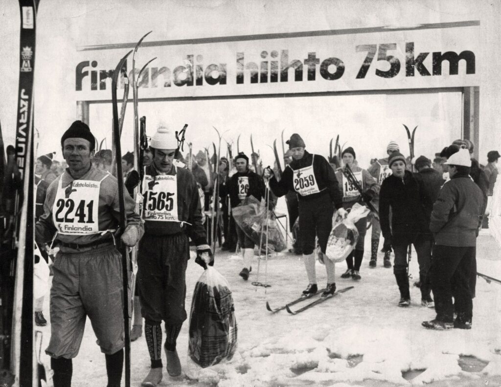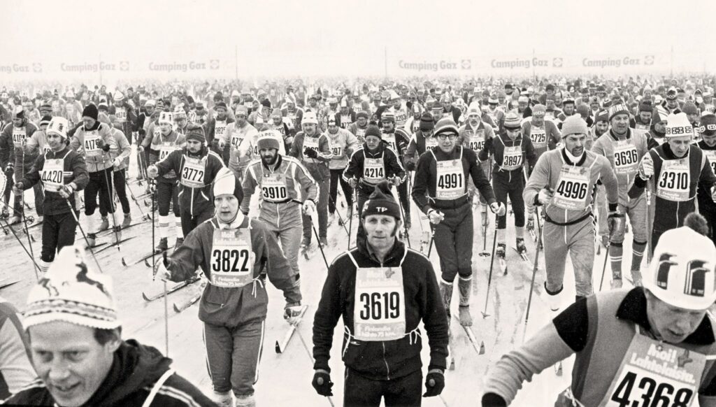 The shift from wood skis to fiberglass skis in 1974 brought a significant change to ski competitions. Wearing fibreglass skis, ski king Veikko Hakulinen completed Finlandia-hiihto nearly one hour faster in 1975 than when he won over the same distance at the Oslo Olympics in 1952. A separate women’s series was added in 1975. Of course, women could already ski in the general series before then.