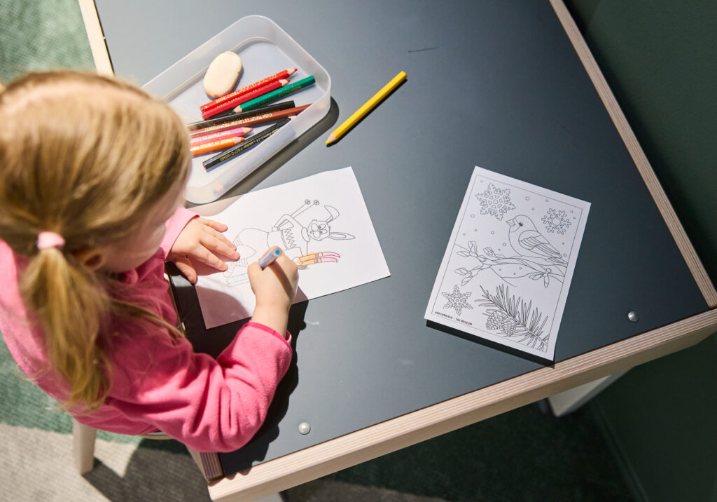 Hiihtomuseon uudistetussa yläkerrassa on avautunut lastennurkkaus Nuoska! Nuoskassa saa hengailla, pelailla, askarrella, värittää, lukea ja ihan vaan olla.